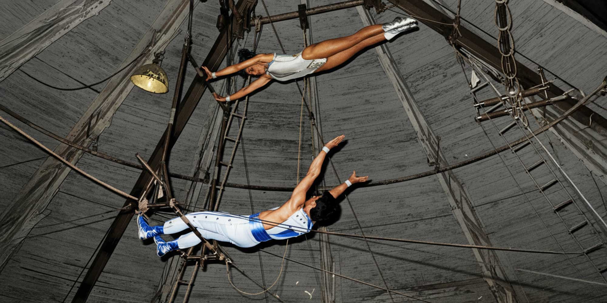 WENDORF: Auf der Bühne ging es beim Fangstuhl und dem Knotenwurf immer um Präzision und Partnerschaft – die Körper der Artistinnen und Artisten erzählen die Geschichte, nicht die Technik. Heute sehe ich hybride Darbietungen wie Trapez mit Drahtseil, wie wir es in Kiew beobachtet haben: Vom Trapez springen und weiter auf dem Drahtseil arbeiten. Die Techniken werden vermischt, innovativ, wenn auch nicht immer praktikabel.