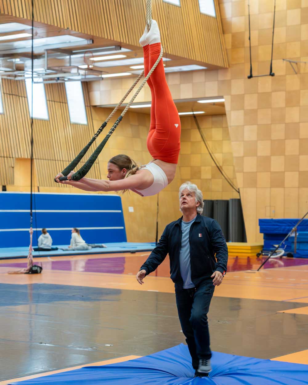 Ronald Wendorf mit der Artistik-Schülerin Julie Scheier beim Unterricht am Trapez, Fotos: Dirk Thiele