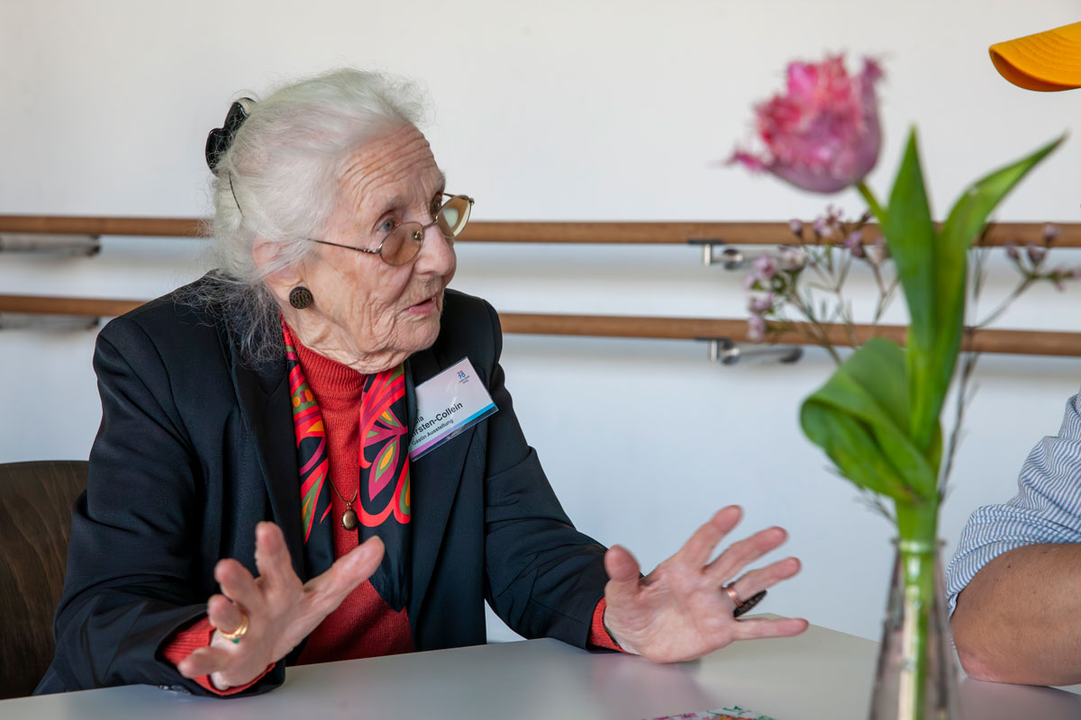 Ursula Kirsten-Collein, eine Ikone der klassischen Tanzausbildung und Autorin, spricht trotz ihres mehr als neunzig Jahre Lebensalter mit fester Stimme und richtet ihren wachen Blick auf die vielen Menschen im trubelig, lauten Foyer der Staatlichen Ballett- und Artistenschule.