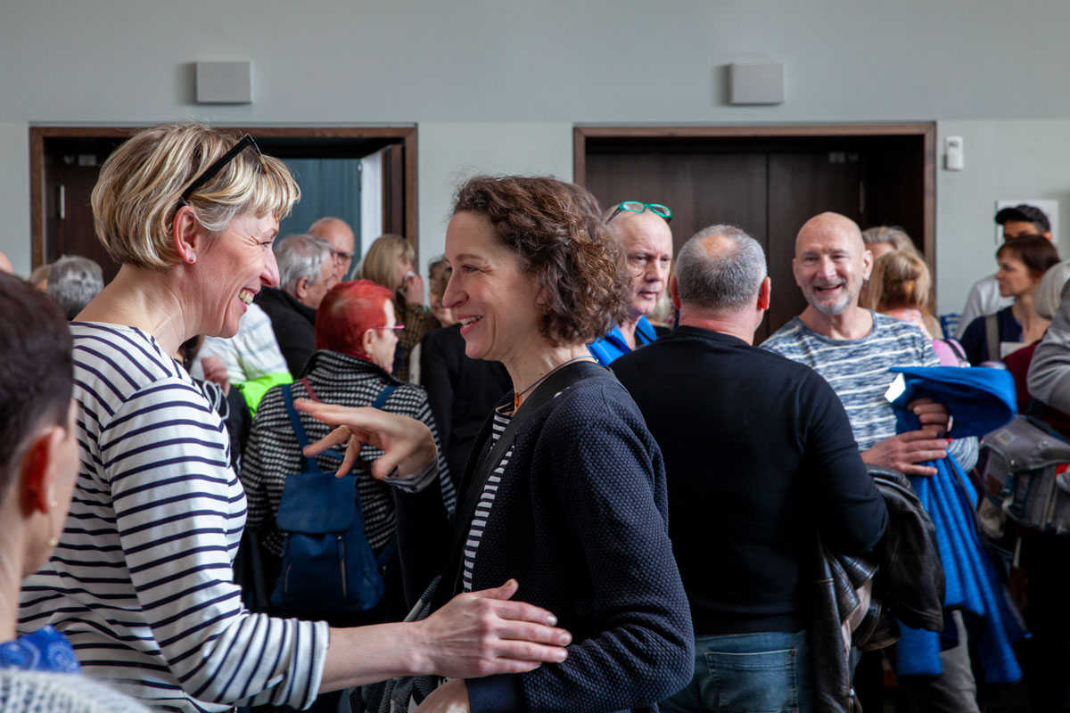 Die beiden winken quer durch den Saal René, dem Leiter des Jubiläumsjahres zu.