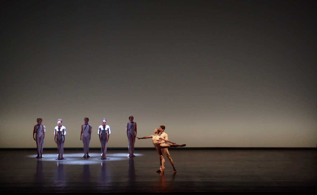 Sechs Paare aus dem 7.-9. Ausbildungsjahr (11.-13. Klasse) tanzen in Chemnitz die 7. Sinfonie, II. Satz alegro von Ludwig van Beethoven in einer Choreografie von Uwe Scholz.