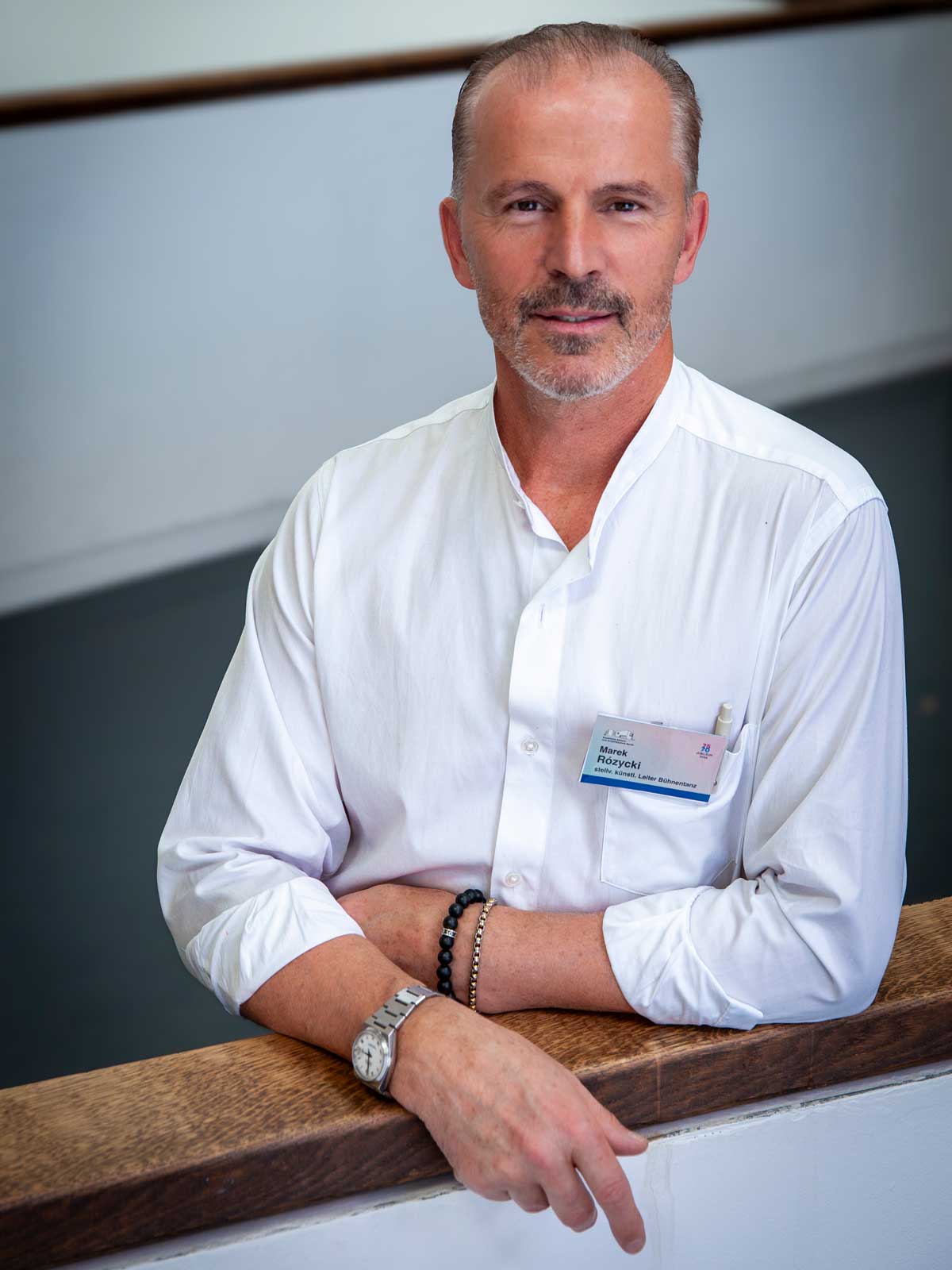 Marek Rózycki, Stellvertretender künstlerischer Leiter Fachbereich Bühnentanz, wird von allen Seiten von Gästen belagert, es ist schwer, ihn für ein Foto und ein kurzes Statement beiseite zu ziehen.